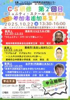 研修終了しました。 多くのご参加ありがとうございました。 令和6年度 地域の核となる人材・団体育成事業 及び令和6年度 課題解決チャレンジ事業地域の活動者ステップアップ研修 日時:令和6年8月4日(日)13:30~16:00 会場:大研修室 |